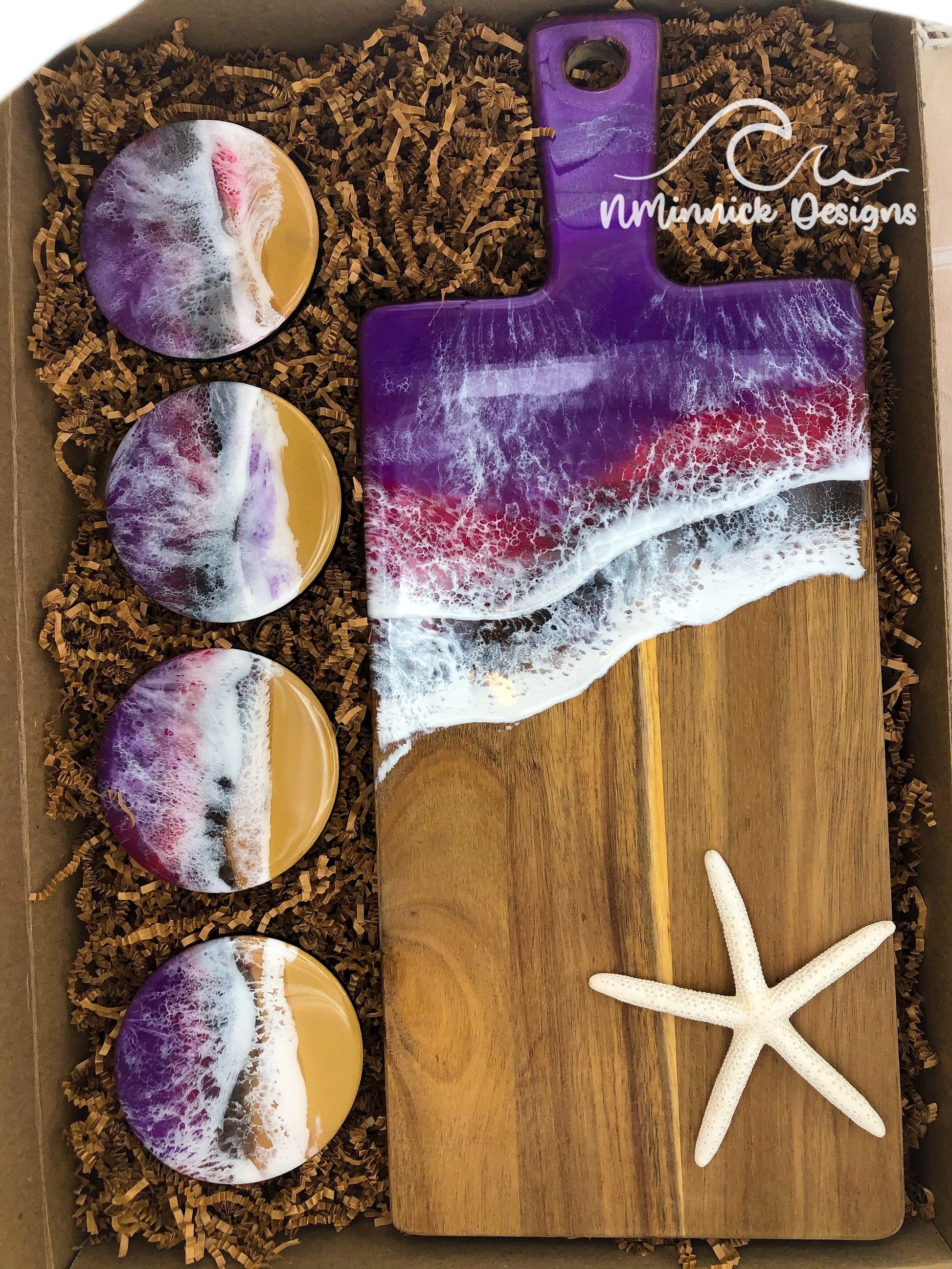 Please note that all made to order resin items must be allowed a minimum cure time of 72 hours prior to being shipped. The current production time for the Ocean Charcuterie Board and Coaster Birthday Box is 5-7 business days.